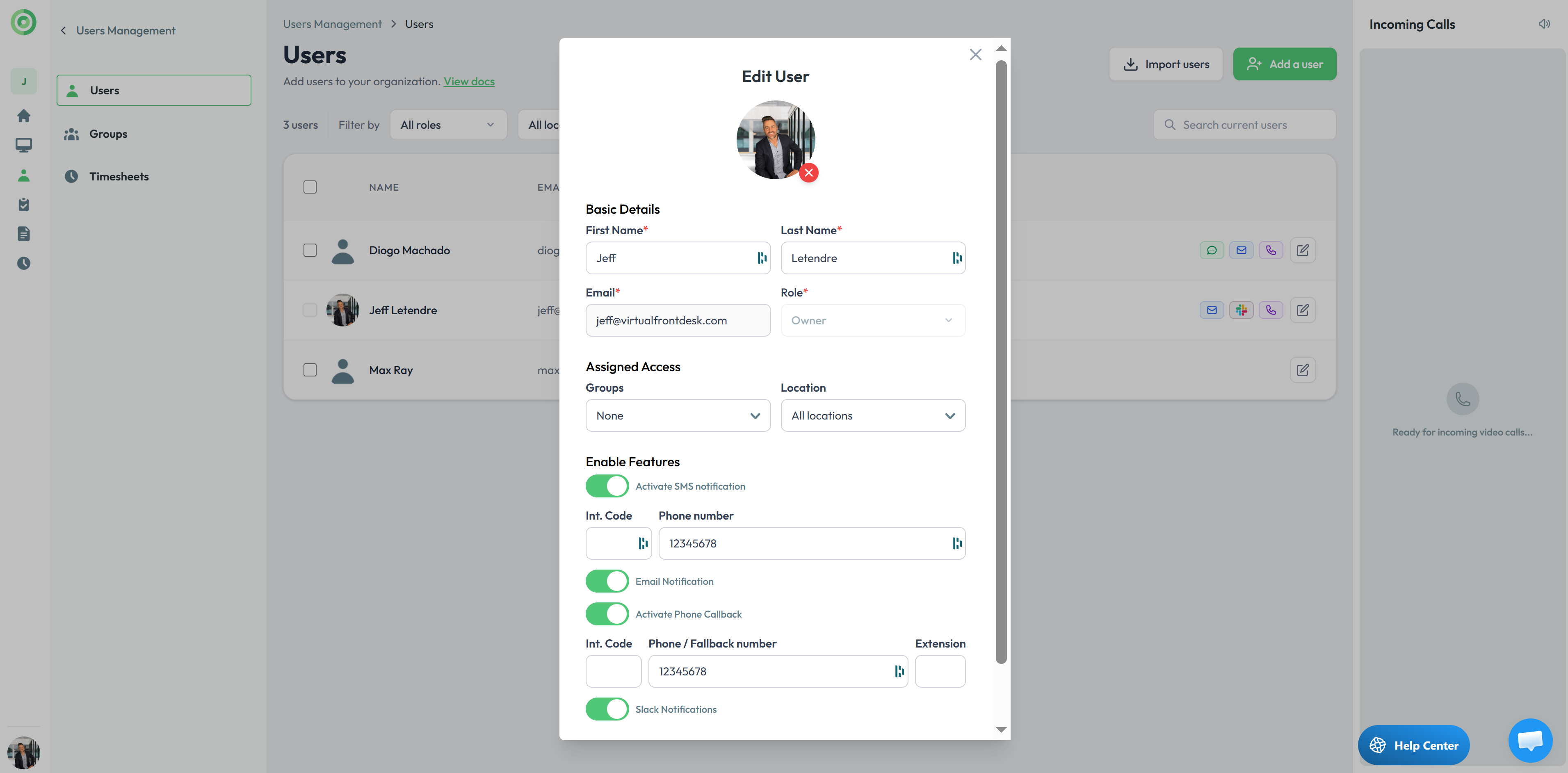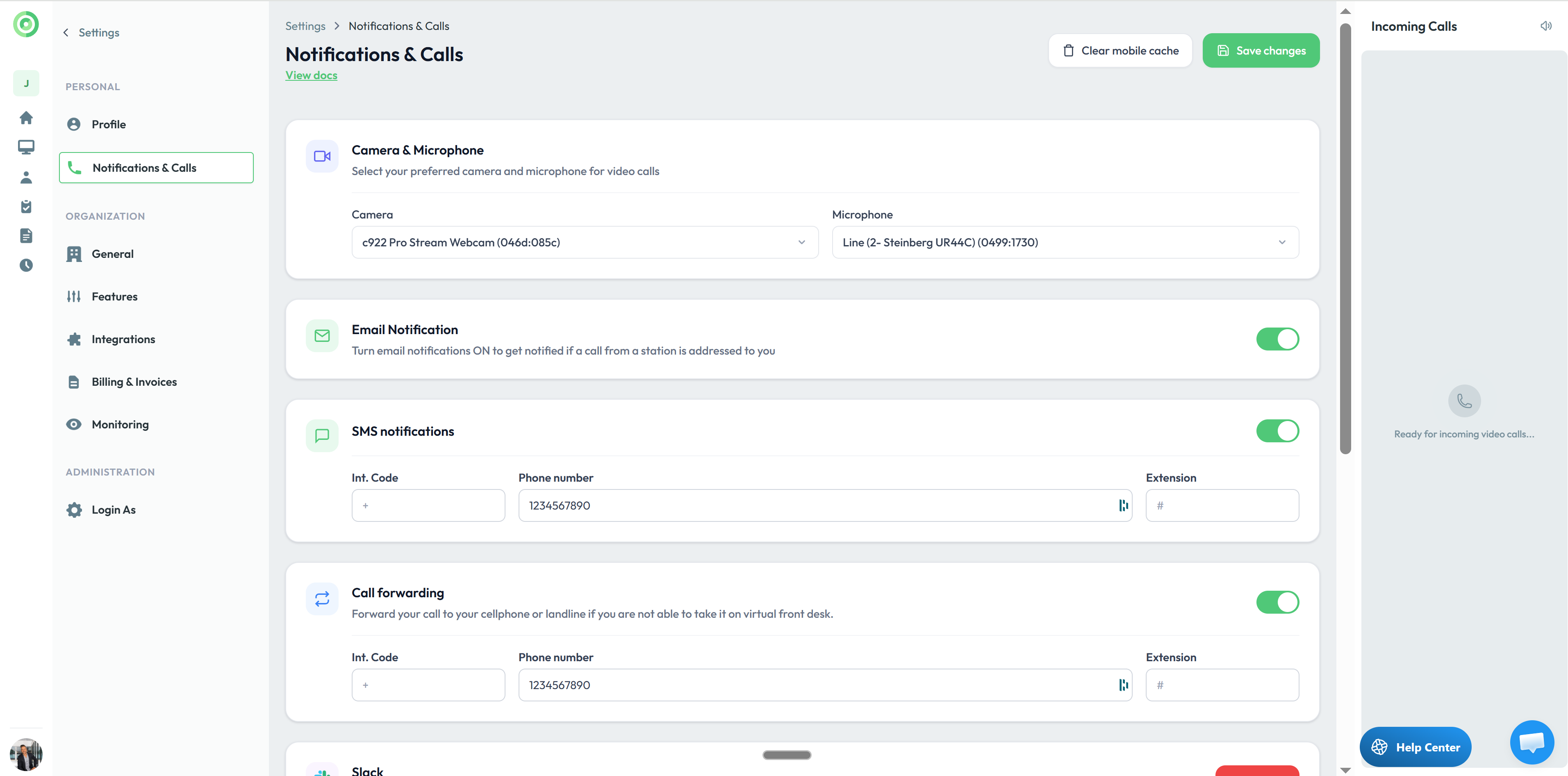 Edit any user, toggle on Call Forwarding, and add a phone number. The system will then: