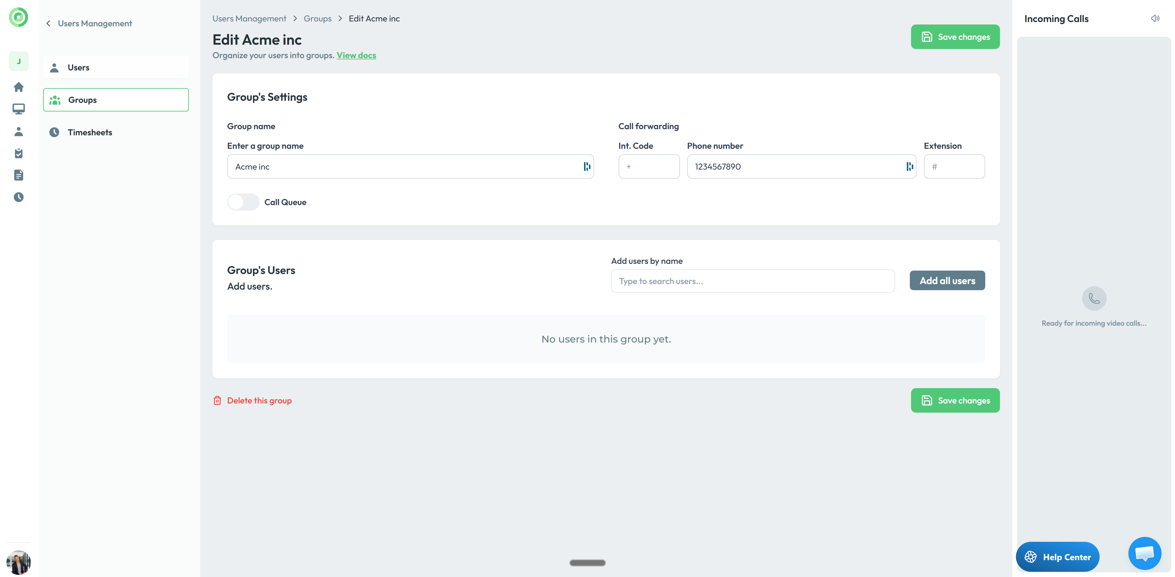 This option differs from the single-button phone call setup because it lets you create sub-menu to choose from if you select more than one group for a button. It's especially useful when you want to display a company or department name instead of an individual user. For example, a co-working space can create a group named after each tenant company, enter only the company's phone number, and surface those groups in a sub-menu. Clicking a group's button dials its number directly.