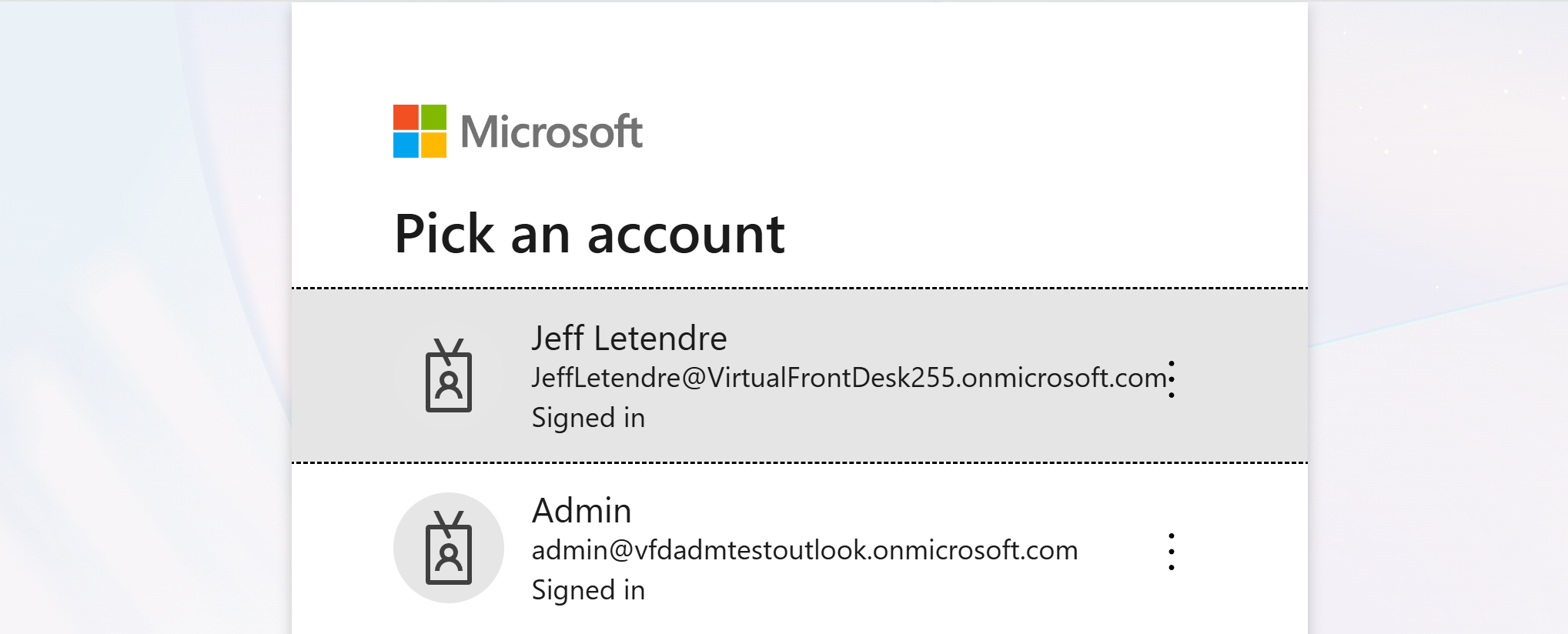 In order to be able to use the MS Teams functionality, you must Sign up using the Microsoft SSO option from the app.virtualfrontdesk.com. Make sure you are logged in to your MS Teams app with the same Enterprise Microsoft Account.