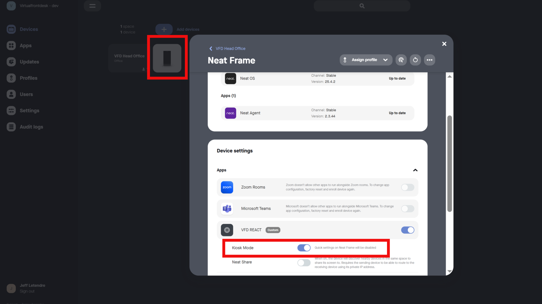 Important Note: You can only use your device to access Virtual Front Desk on Neat App Hub after you have enrolled your device on Neat Pulse.