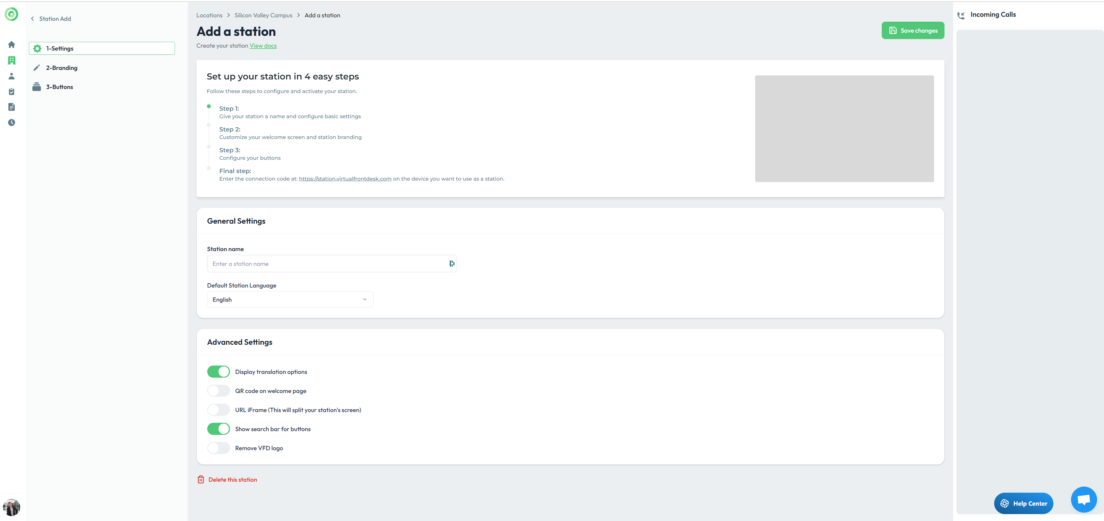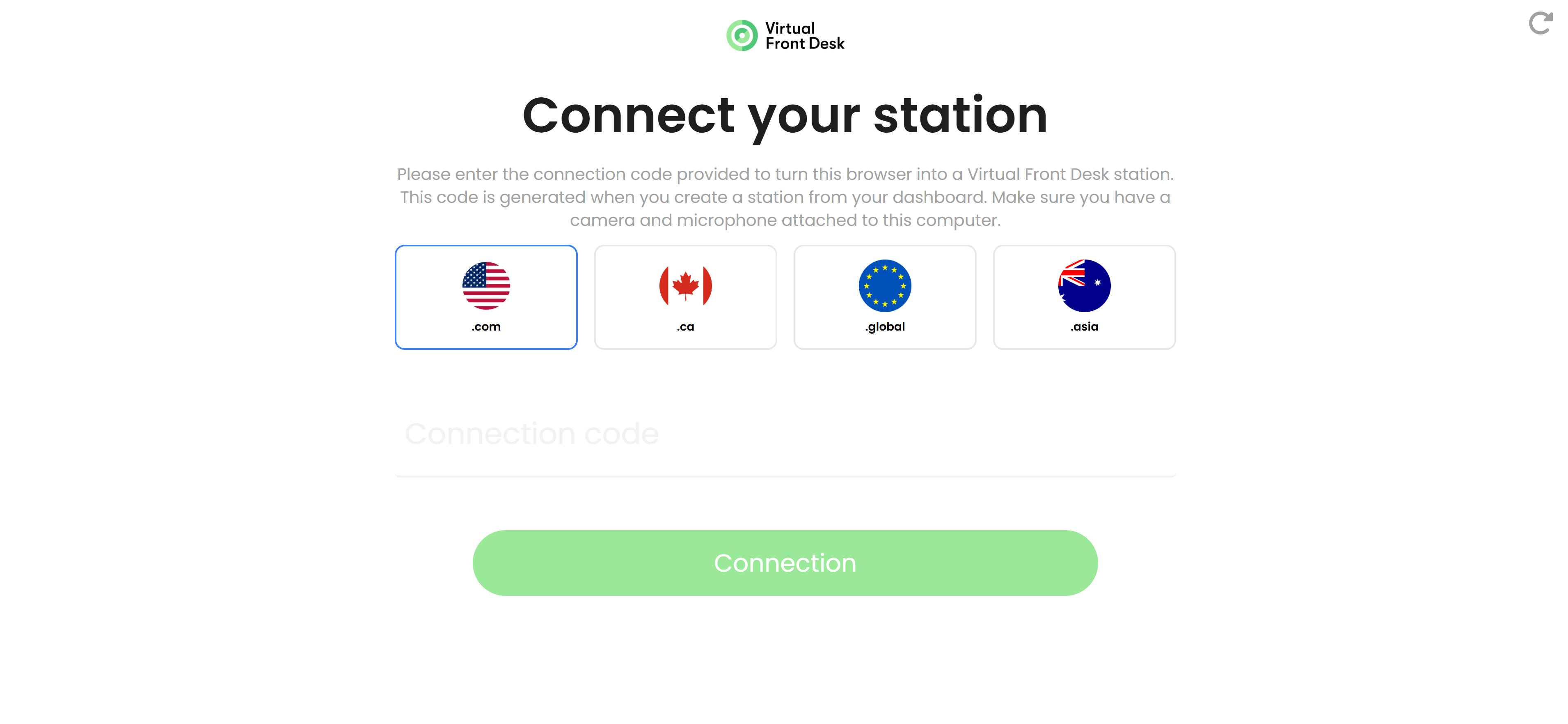 Once the setup is complete, enter the station’s connection code at station.virtualfrontdesk.com on the device you want to use as your station.