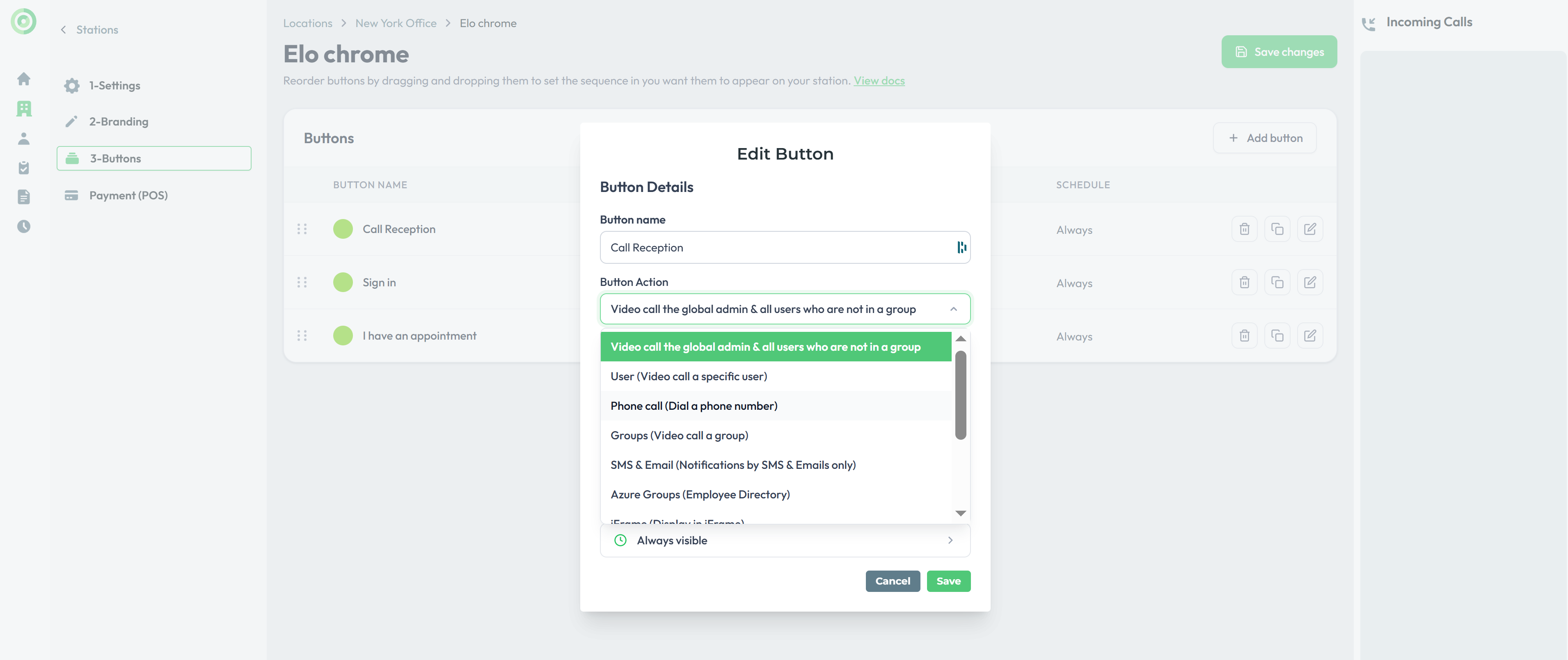 Follow steps 1–3 to configure the station’s design and the action buttons you want to display.