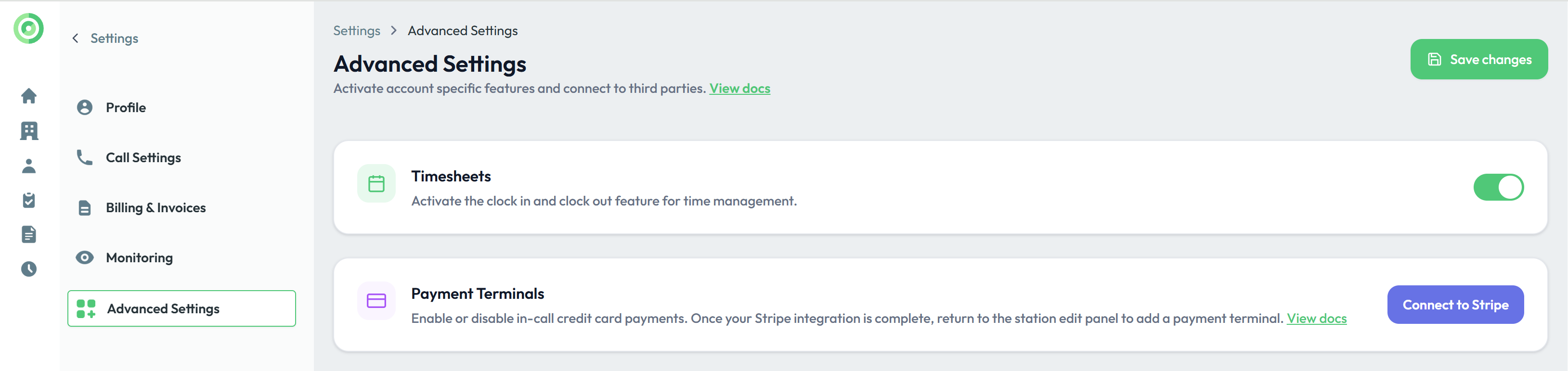 From the Settings menu of your Virtual Front Desk dashboard, connect your Stripe account.